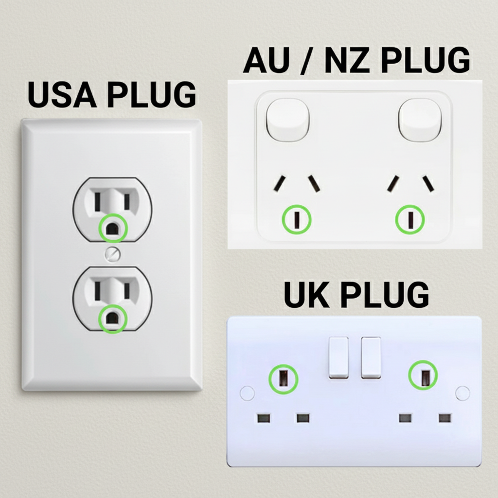 - Plug the discreet earthing cord into a standard grounded wall socket.